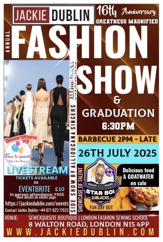 “Founder of the London Fashion Sewing School, Jackie Dublin, dedicates her time empowering students to gain practical hands on experience in the fashion industry. She has 48+ years experience and happy customers take advantage of her bespoke garments and curtains via her outlet store, Sewexquisite Boutique, where the motto is “You dream it! We’ll create it“
